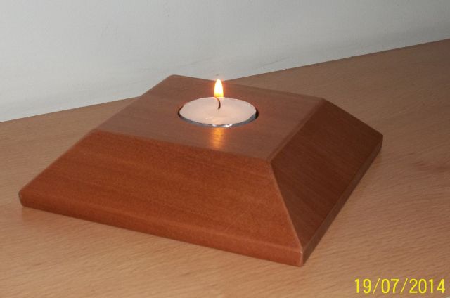 Hermoso porta Vela para velas "Tealight" en Raulí. De una sola pieza cuadrada con cortes de °45 en los cantos, se puede usar por los dos lados dependiendo la cantidad de velas que se requiere. La protección de este producto se realizo con Laca para madera para una limpieza fácil. Uso interior.