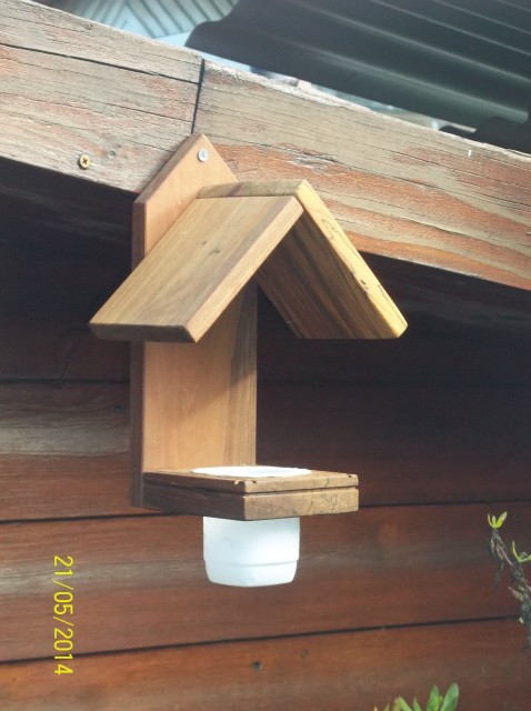 Este bebedor de agua para aves es de Madera Raulí reciclada con una especial énfasis en la protección de este producto lo cual se realiza con Aceite natural no contaminante.