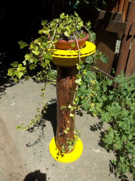 Hermosos Maceteros en altura unido con troncos de Cipress. Especial para su interior o exterior. La protección del tronco se realizo en color natural y el Macetero en Metal reciclado con diferentes colores como, rojo, amarillo, blanco, negro etc.