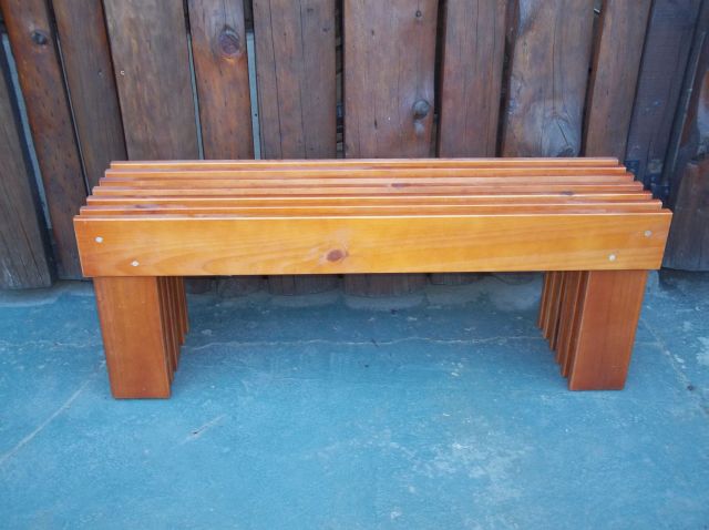 Asiento (Banco) para la Terraza en Pino color Cedro, unido con Tarugos y Adhesivo resistente al Agua.