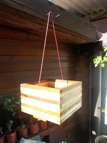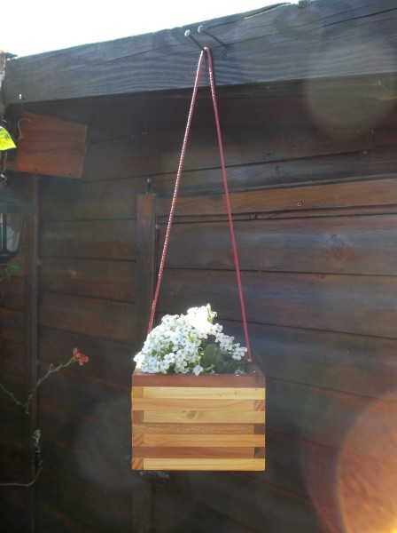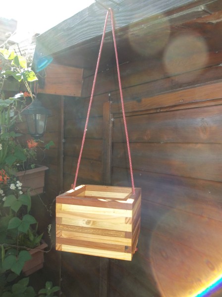 Porta Macetero colgante en Madera reciclada de diferentes especies.