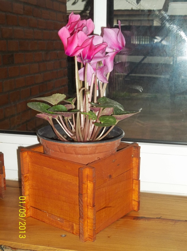 Porta Macetero rústico en madera reciclada de Pino.